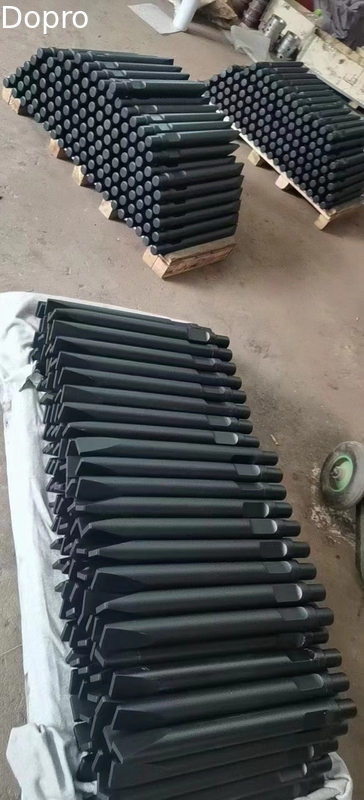 El extremo de trabajo del cincel del martillo de la excavadora está equipado con una punta de acero endurecido, también conocida como punta de herramienta o punta de cincel. Esta punta es responsable de entregar la fuerza de impacto para romper materiales duros como hormigón, roca o asfalto.