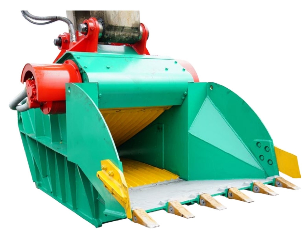 Los cubos trituradores se emplean principalmente en la minería y la demolición para la descomposición de minerales en bruto, hormigón y mampostería. Durante el proceso de trituración, el cubo triturador se coloca verticalmente para que el material triturado pueda ser liberado. El cubo de mandíbulas funciona con el sistema hidráulico de la excavadora.