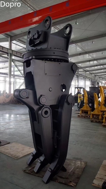 La pinza rotatoria para excavadora es un tipo de accesorio frontal especialmente utilizado para agarrar materiales de desecho utilizado con la excavadora. Consta de cinco o cuatro garras de acero curvadas, que pueden abrirse y cerrarse bajo el control de la excavadora, sujetar los materiales de desecho y transportarlos.